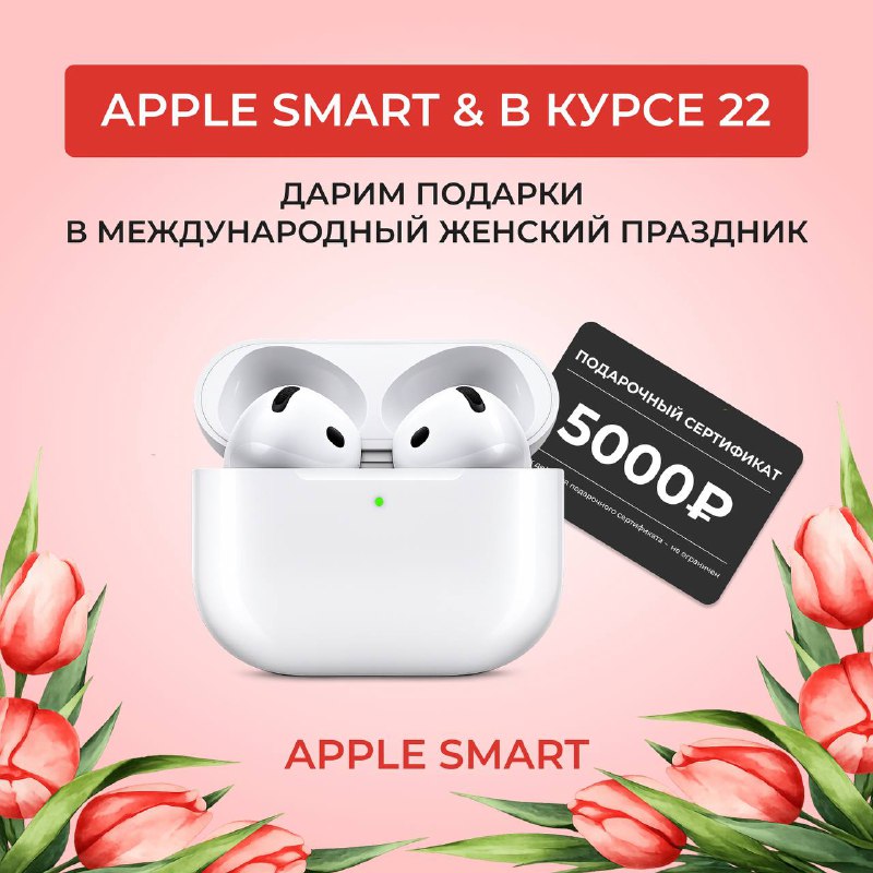 🎉 Розыгрыш подарков к 8 Марта! 🌹 Дорогие друзья! ВКУРСЕ22 в партнерстве с APPLE SMART подготовили для вас замечательные подарки, которые сделают этот праздник ещё более особенным! 👀 🎁 Что можно