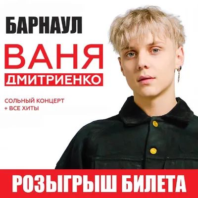 🎁 Дарим билет на концерт Вани Дмитриенко, который состоится в Барнауле. ✅ Условия: Быть нашим подписчиком: ➡️ @KudaGo22 и max.ru/vkurse22 ➡️Сделайте репост этого поста; ➡️Жми кнопку участовать 👉