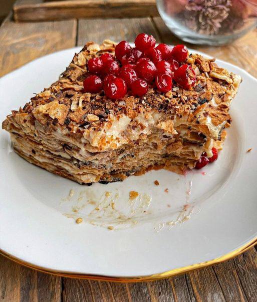 🍰 НАПОЛЕОН ИЗ ЛАВАША😍 ✅ КБЖУ На 100г - 116/ 4.5/ 2.1/ 19.4 👩🏻🍳Возьмём: 145г-лаваша (армянский тонкий бездрожжевой) 500мл молока (у меня 2,5%) 15 г-сухого молока обезжиренного(СОМ) 20г-кукурузн