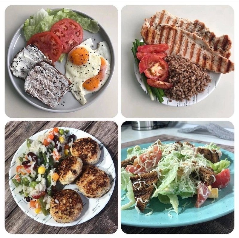 ✅Меню на 1400 кКалорий с высоким содержанием белка. 🔸Завтрак Два тосты с цельнозернового хлеба(80г), смазанные 10г сливочного сыра, 2 жаренных яйца, 80г помидора, и несколько листов салата КБЖУ: К
