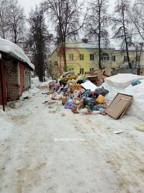 🗑 Очередная свалка — теперь на Асаткина. Возле дома № 11 мусор не вывозят, потому что управляшка не чистит дорогу. Мусоровоз просто не может проехать к контейнерам. Итог — горы отходов и антисанит