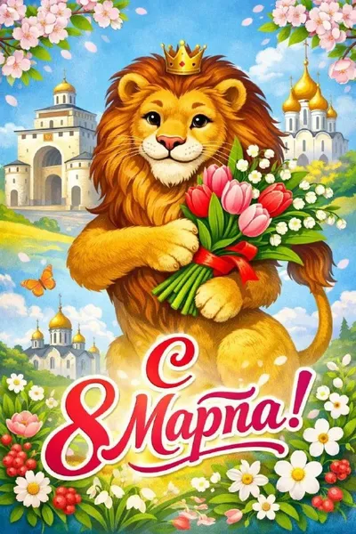 Прекрасные открытки с владимирским львом к 8 Марта 😍 Региональное правительство поздравляет с предстоящим праздником. И мы присоединяемся) Кстати, как будете отмечать? ❤️ — соберёмся с семьёй и/или