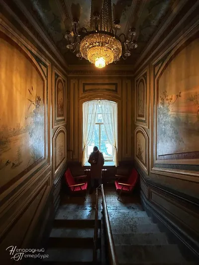 Живописная парадная в районе Семенцы 🥀 Не удивление для Петербурга, когда за неприметным фасадом скрывается неотразимая красота. Особняк Петрова – яркий пример этому. Внутри сохранилась уникальная