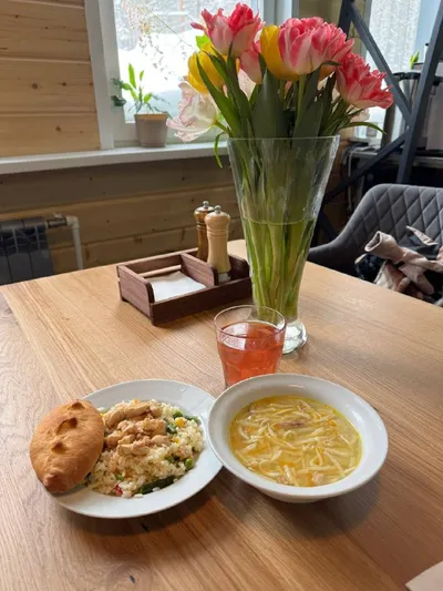 Чуть не забыл подвести итоги еженедельной рубрики #гастрорадость Самое вкусное и запоминающееся в этот раз это обед на ГЛК Стожок😋 Куриный суп с лапшой, прям как из детства и сочный пирожок с яблок