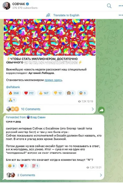 сука я дед смотрел интервью Собчак с Ексайлом (это блогер такой типа русский мистер бист) и там у них была игра : Собчак показывала исполнителей и Ексайл должен был назвать, кто поет. В итоге я угала