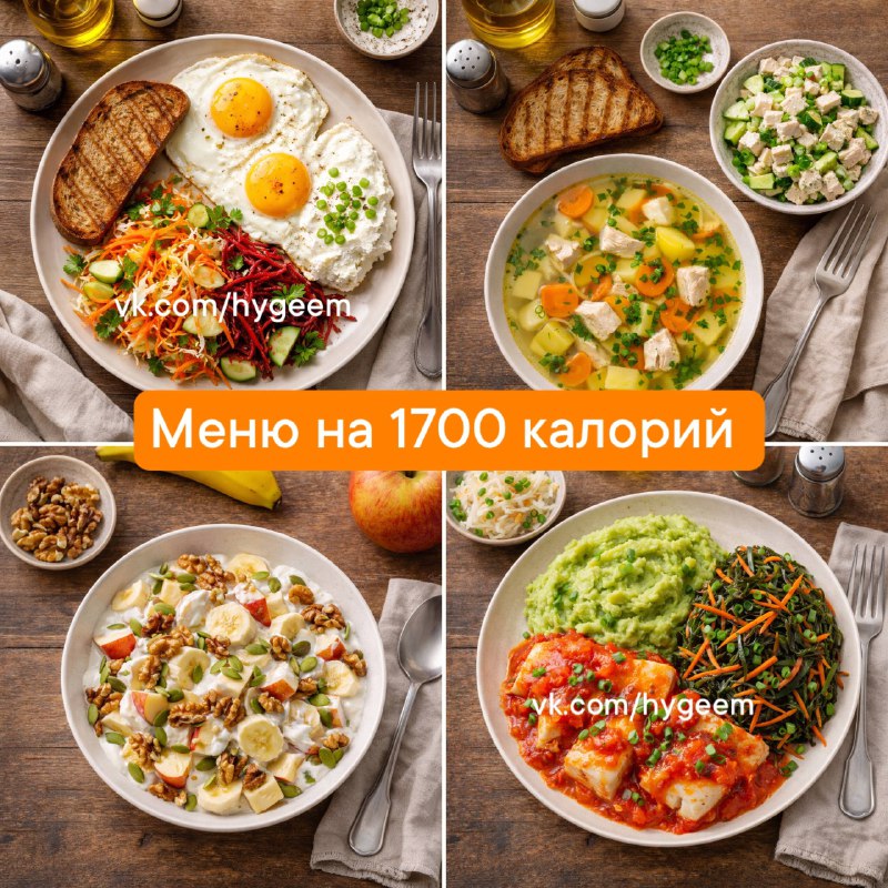 ✅ПП-меню на 1700 калорий 😊👍 🔸Из доступных продуктов с нормальным количеством белка и сбалансированным БЖУ ≈1700 ккал. Расчёты ориентировочные, подходят для повседневного питания. ✅Завтрак ≈ 420 к