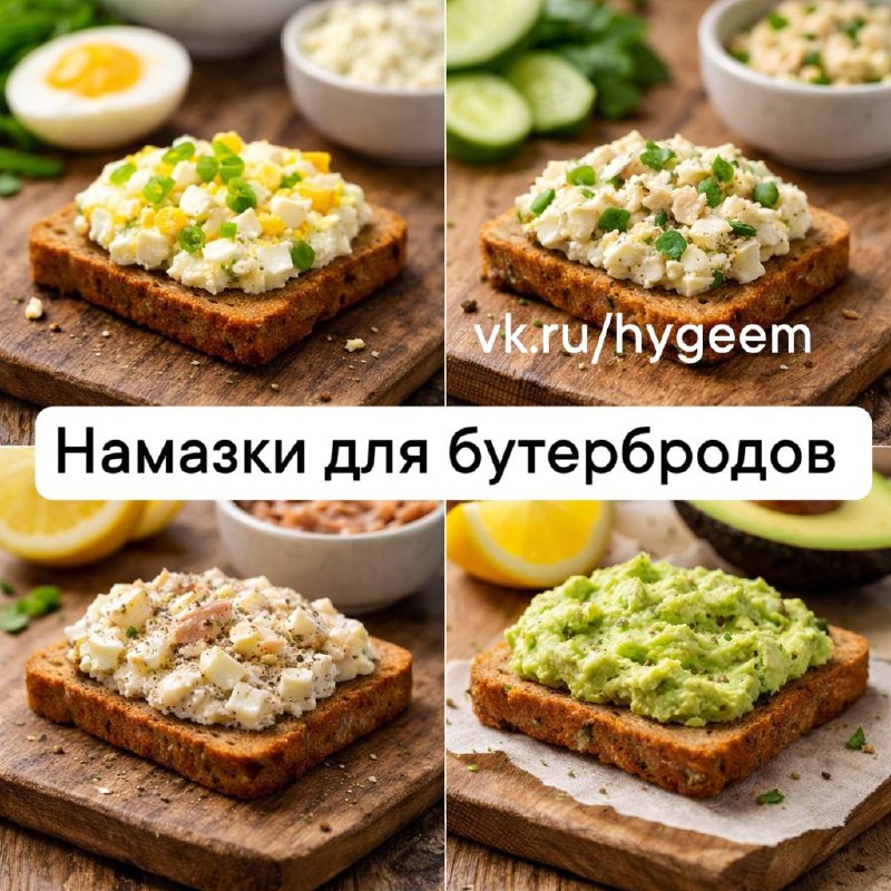 ✅подборка 4 простых и доступных ПП-намазок для бутербродов. ▪️Все варианты подходят для завтраков, перекусов и лёгких ужинов. Продукты максимально обычные . 🔸1. Творожно-яичная намазка ✅Ингредие