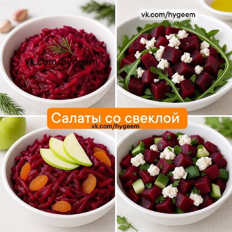 🎯 4 ПП-салата из свёклы — вкусно, просто, полезно! ✅Свёкла — отличный продукт для снижения веса: очищает, насыщает, улучшает пищеварение и насыщает железом. 🥗 1. Свёкла с греческим йогуртом и чесно