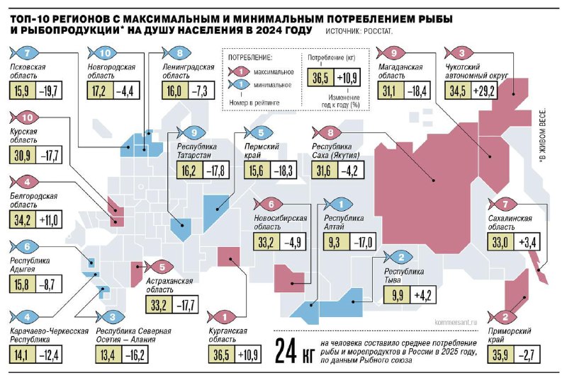 🐟Что происходит в рыбопромышленной отрасли России 📊Статистика: в 2025 г. продажи рыбной продукции в рознице в натуральном выражении снизились на 1%, подсчитали в аналитической компании NTech. Спад