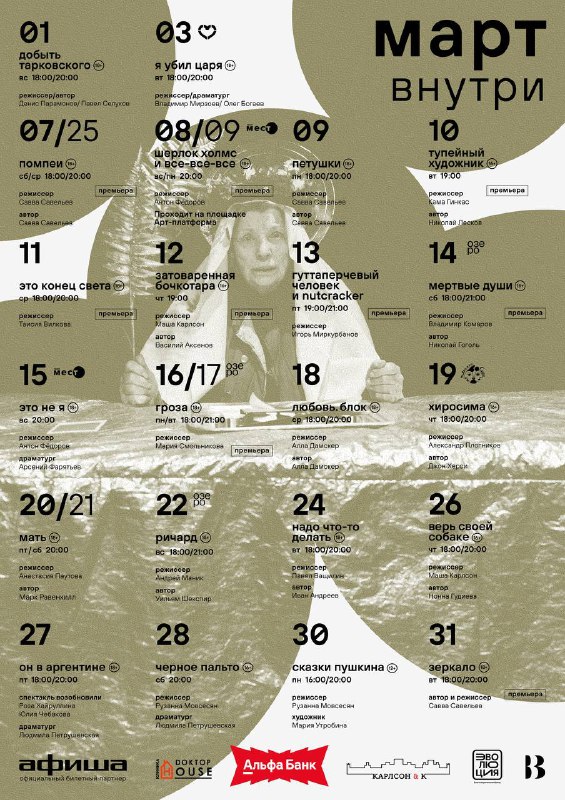 Дорогие друзья-обладатели билетов на «Шерлок Холмс и все-все-все» 8 и 9 марта Напоминаем, что премьера пройдёт по адресу Георгиевский пер., 3/3 в «Арт-платформе» (Новый Манеж) Будем ждать ваших отзы