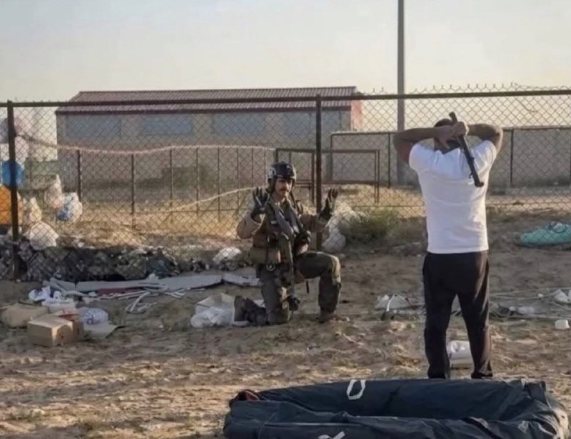 Пилот одного из сбитых ПВО Кувейта американских истребителей F-15E Strike Eagle сдаётся вооруженному трубой местному жителю. Всего за сегодня зенитчики сбили три американских F-15. @voenndelo