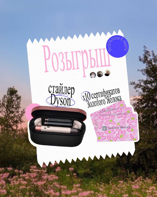 🌷ВЕСЕННИЙ РОЗЫГРЫШ! Дорогие, в преддверии 8 марта мы вместе с нашими друзьями решили снова порадовать вас ваушными подарками: — стайлер Dyson Airwrap💇♀️ — 10 сертификатов Золотого Яблока по 5000₽