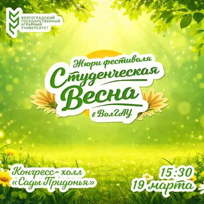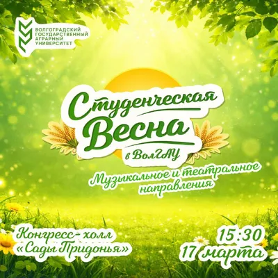 🌾🎆УЖЕ СКОРО! Праздник весны, красоты и таланта в Волгоградском ГАУ! 🎭Творческая молодежь университета может проявить себя на фестивале "Студенческая весна в ВолГАУ-2026". 🎶17 марта все желающие