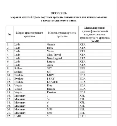 Финальный список машин, на которых можно будет работать в такси, опубликовал Минпромторг 13 из 22 моделей в списке — «Москвич» и Lada. С 1 марта новые автомобили для работы в такси можно брать тольк