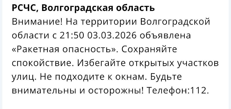 В Волгоградской области объявлена «Ракетная опасность» UPD: отбой ракетной опасности 🔴 Подписаться | Прислать новость