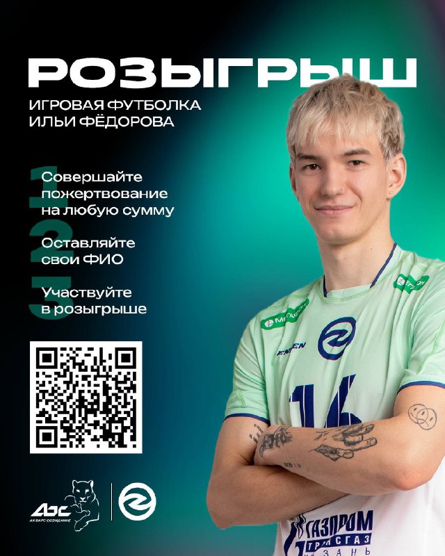 Сколько реакций 🫶 соберет черничная расцветка формы Ильи Фёдорова? ❤️🔥🫰 Напомним, что Илья совместно с Благотворительным фондом «АК БАРС СОЗИДАНИЕ» разработал специальную форму QR-код на рукаве