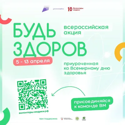 🙌 С 5 по 13 апреля 2026 года в рамках национального проекта «Молодежь и дети» пройдет Всероссийская акция «Будь здоров!», приуроченная ко Всемирному дню здоровья, которая ежегодно объединяет 89 регио