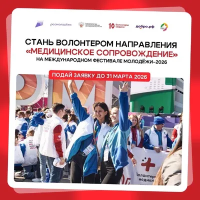 ❤️Стань волонтером функционального направления «Медицинское сопровождение» на Международном фестивале молодёжи–2026 ❤️ До 31 марта 2026 года можно подать заявку, заполнить анкету и пройти онлайн-курс