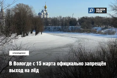 В Вологде с 15 марта официально запрещён выход на лёд С 15 марта в Вологде начинает действовать запрет на выход на лёд городских водоёмов. Такое решение принято из‑за устойчивых плюсовых температур и