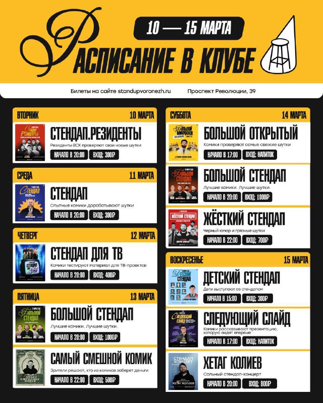 🔲Афиша Воронежского стендап клуба на ближайшие дни 📍пр.Револяции 39 📆Дата: 10.03-15.03 #standup Воронеж | Куда пойти?