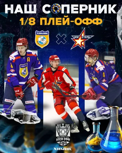 💡Вниманию болельщиков! Онлайн продажи билетов на домашний матч 1/8 Чемпионата (плей-офф) между командами ХК «Химик🏒» - «Ижсталь 🏒» на 23 марта будут открыты 20.03.2026 г. с 16:00 🎫Купить билеты