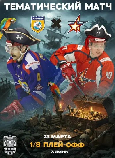 23 марта, первый матч плей-офф, планируется провести в необычной тематике, выдержанной в духе Капитана Джека Воробья Никиты Соколова (Фильм: «Пираты Карибского моря»)🫡 🔗Ветер доносит лязг металла.