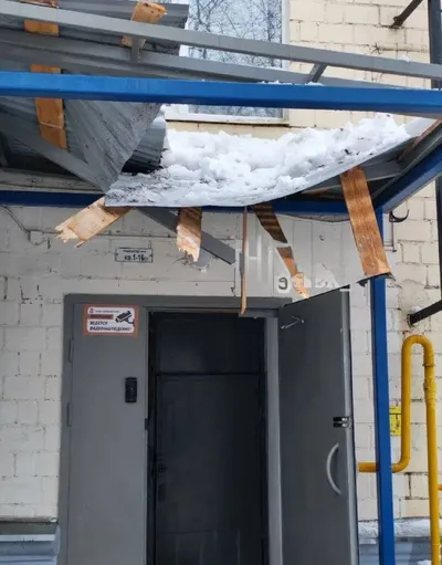🧊 Ледяная глыба пробила козырёк подъезда на Вокзальной улице, 1.