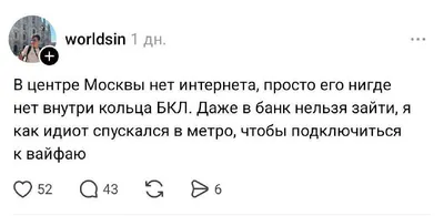 🤬 Москвичи возмущены сбоями связи. Люди жалуются, что приходится ловить интернет в переходах метро. В центре города не работают банковские приложения, курьеры теряют заказы, магазины простаивают. Да