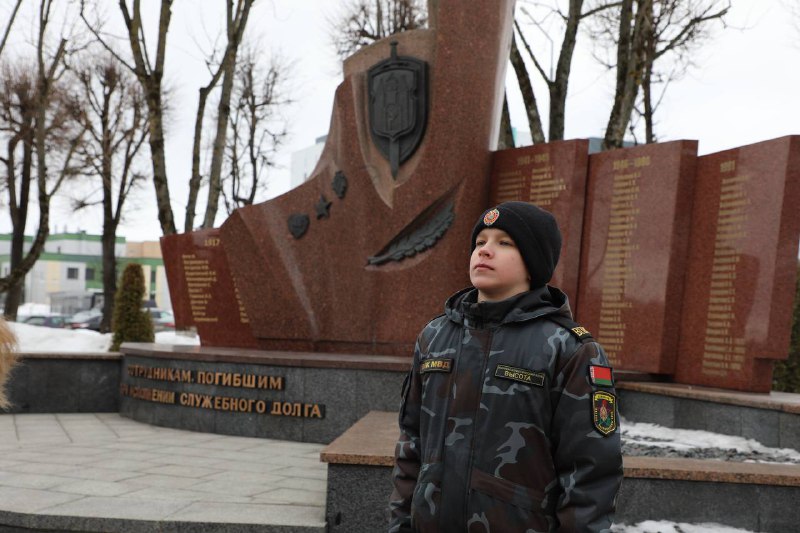 Воспитанники военно-патриотического клуба «Доблесть» Октябрьского РУВД г. Гродно приняли эстафету по несению Вахты Памяти. Почетный караул был выставлен у памятного знака сотрудникам органов внутренни