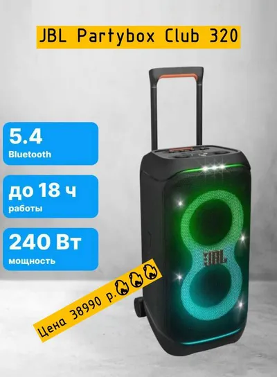 📣 Мощная колонка JBL Party Box 320 всего за 38 990 р. 🔥🔥🔥 🔹 Особенности: Водостойкий корпус, возможность караоке, 2 удобные ручки для переноски, световые эффекты, поддержка стереопарования (TWS