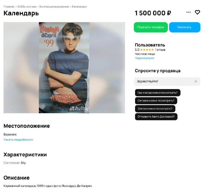 В Воронеже продают календарик с Лео за 1,5 миллиона рублей. Это мы покупаем… 😊 Мы в МАХ | Написать нам