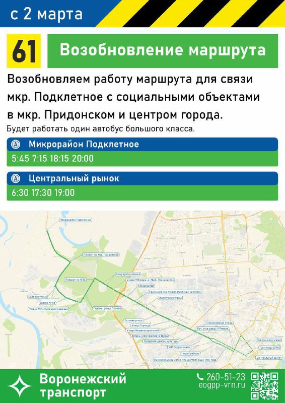 С завтрашнего дня на дороги Воронежа выйдет маршрут №61. Смотрим на карту и запоминаем 😊 Мы в МАХ | Написать нам