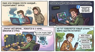 Кажется, у вайбкодинга есть довольно понятная эпидемиология. Рано или поздно человек оказывается слишком близко к кому-то, кто уже вайбкодит, и подхватывает заразу. Сначала идёт фаза острого заражен