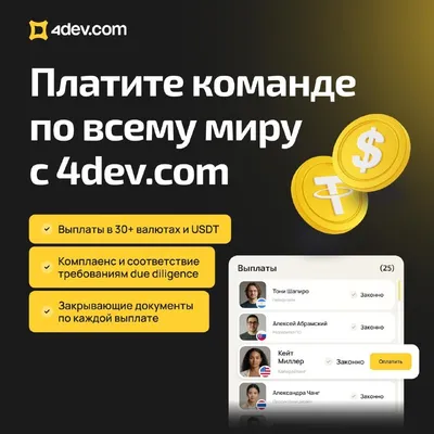 Лея из 4dev.com попросила напомнить про их платформу Payroll платформ стало много, но только 4dev.com делает price match. Если прийти в 4dev.com с условиями другого провайдера, команда постарается п