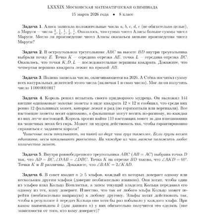Пробная олимпиада на интенсиве к ММО и Турниру городов стартовала! Делимся с вами условиями. На написание дается 5 часов. Тренировочная олимпиада — отличная возможность получить полную картину о с