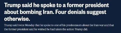 ⚡️Трамп заявил, что бывший президент США сказал ему, что жалеет, что не бомбил Иран, однако помощники всех четырёх живущих экс-президентов это опровергли, — NBC News. Трамп не назвал, кого именно он