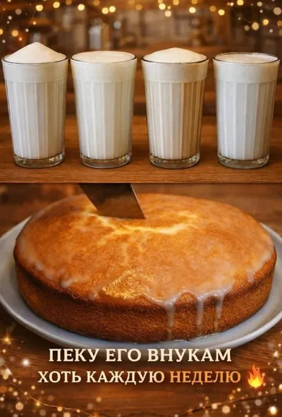 ПИРОГ «4 СТAКАНА» Один раз испечете — будете готовить постоянно 💛 Простой, проверенный и очень удачный рецепт. Пирог получается пышным, нежным и идеально подходит к чашке чая. Ингредиенты (стакан