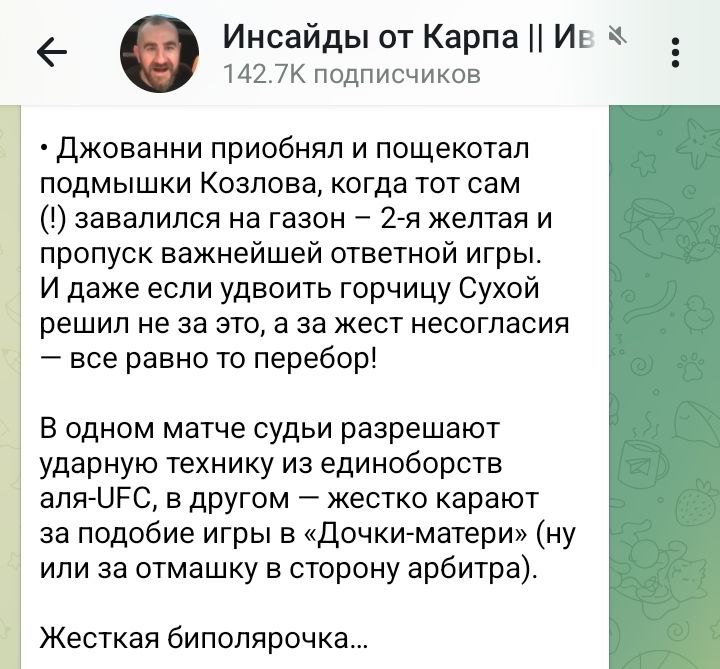 Вот так вот. Перебор, жёсткая биполярочка и... всё. Робкое размазывание соплей и что-то невнятное про судейство. Просто представьте, какая истерика стояла бы сейчас, если бы нечто подобное было в поль