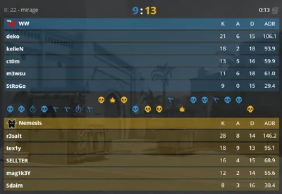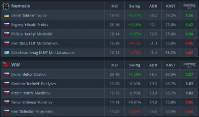 📊 Статистика второй карты и всего матча 🥇 MVP второй карты — 🎮 deko с рейтингом 1.27 🥇 MVP всей игры — 🎮 deko с рейтингом 1.35 @WTeamCS