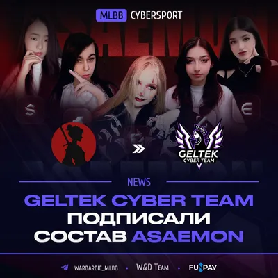 😮 Российская косметическая компания «Гельтек» подписала женский состав 💥 Asaemon, и зашла в нашу дисциплину! Состав 💥 Geltek Cyber Team: ⚔️ dirty svshoq 🌲 Evredian 🧙♀️ Sonjjqkke 🥇 Tokio 🎭 KUW