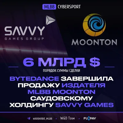 🔥 Cтудия 🔸 Moonton Technology, разработчик Mobile Legends: Bang Bang, перейдет под контроль саудовского холдинга Savvy Games Group. По данным Bloomberg, ByteDance подписала соглашение о продаже Moo