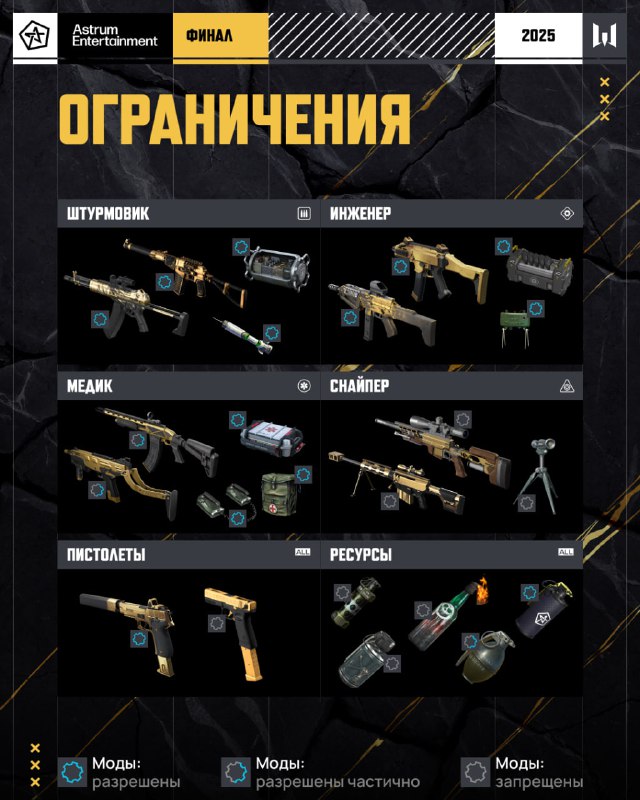 С чем будут играть киберспортсмены в финале Astrum Лиги? 😏 Для повышения зрелищности и баланса игроки сыграют в решающей стадии с особым арсеналом оружия и ресурсов. Он разрабатывался и видоизменялс