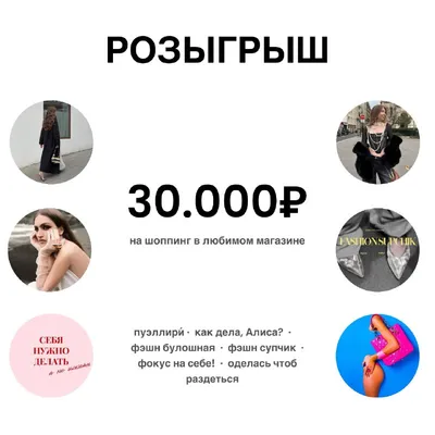 К самому прекрасному празднику необходим прекрасный подарок. Поэтому объединились с любимыми админами, чтобы порадовать вас к 8 марта! Подарим 30.000 рублей на шоппинг в любом магазине, на ваш выбор,