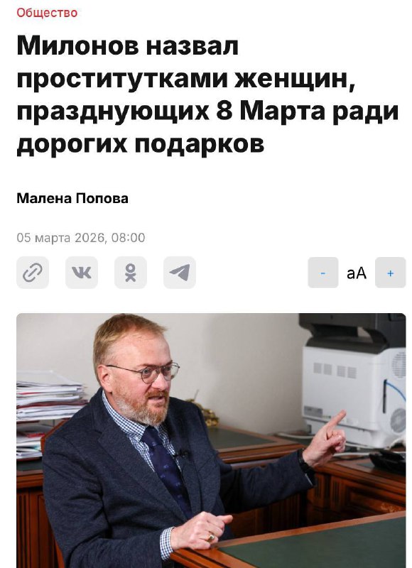 Женщины, ждущие дорогие подарки на 8 марта — проститутки, заявили в Госдуме. Праздник, по мнению Виталия Милонова, символизирует борьбу за равноправие, а подарки от мужчин искажают его смысл. Если