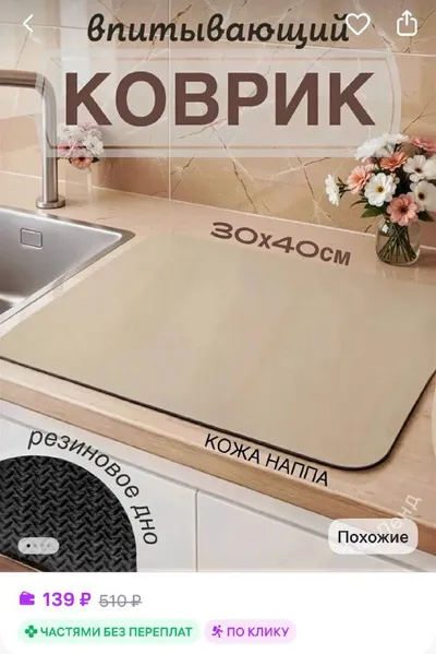 Коврик для сушки посуды из впитывающей экокожи https://www.wildberries.ru/catalog/782262605/detail.aspx?size=1152488019