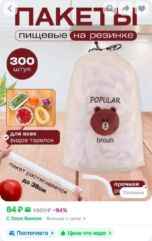 📎Пакеты для хранения продуктов 300 шт , чехол для еды, пакет - крышка для посуды, шапочки для посуды https://ozon.ru/t/d7EGgyb