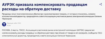 ⚡️ АУРЭК призвала компенсировать продавцам расходы на обратную логистику, поскольку они несут многомиллионные убытки. «Закон должен прямо установить, что расходы на обратную доставку компенсируются п