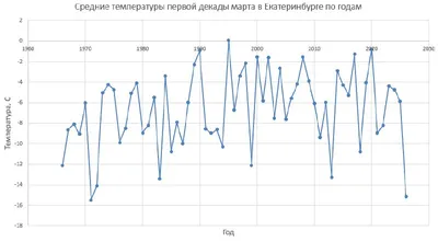 🔻На диаграмме приведены средние температуры первой декады марта в Екатеринбурге по годам. Начало марта 2026 в городе стало самым холодным с 1971 года, т.е. за последние 55 лет. Еще можно отметить, чт