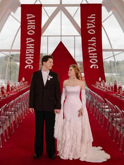 Еще одна яркая и смелая свадьба в стиле A la russe✨ Выездная церемония в форме кокошника, глубокий красный, продуманный декор и атмосфера современного русского шика. Кстати, бар с тематическими кокте