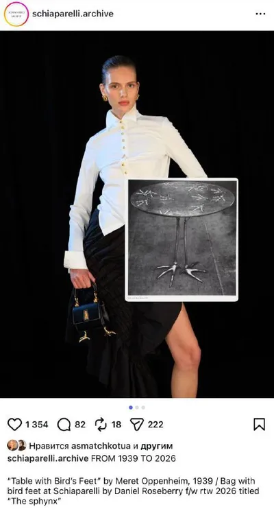 Пахнет скандалом… Кажется, Schiaparelli украли идею у российского дизайнера👀 1 фото - Schiaparelli 2 фото - Djoz В модных кругах обсуждают сумку на «курьих ножках», которую многие увидели как возм